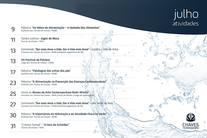 Agora já tem ainda mais razões para nos visitar! Em julho visite as Termas de Chaves e deixe-se maravilhar com tudo o que temos para si.